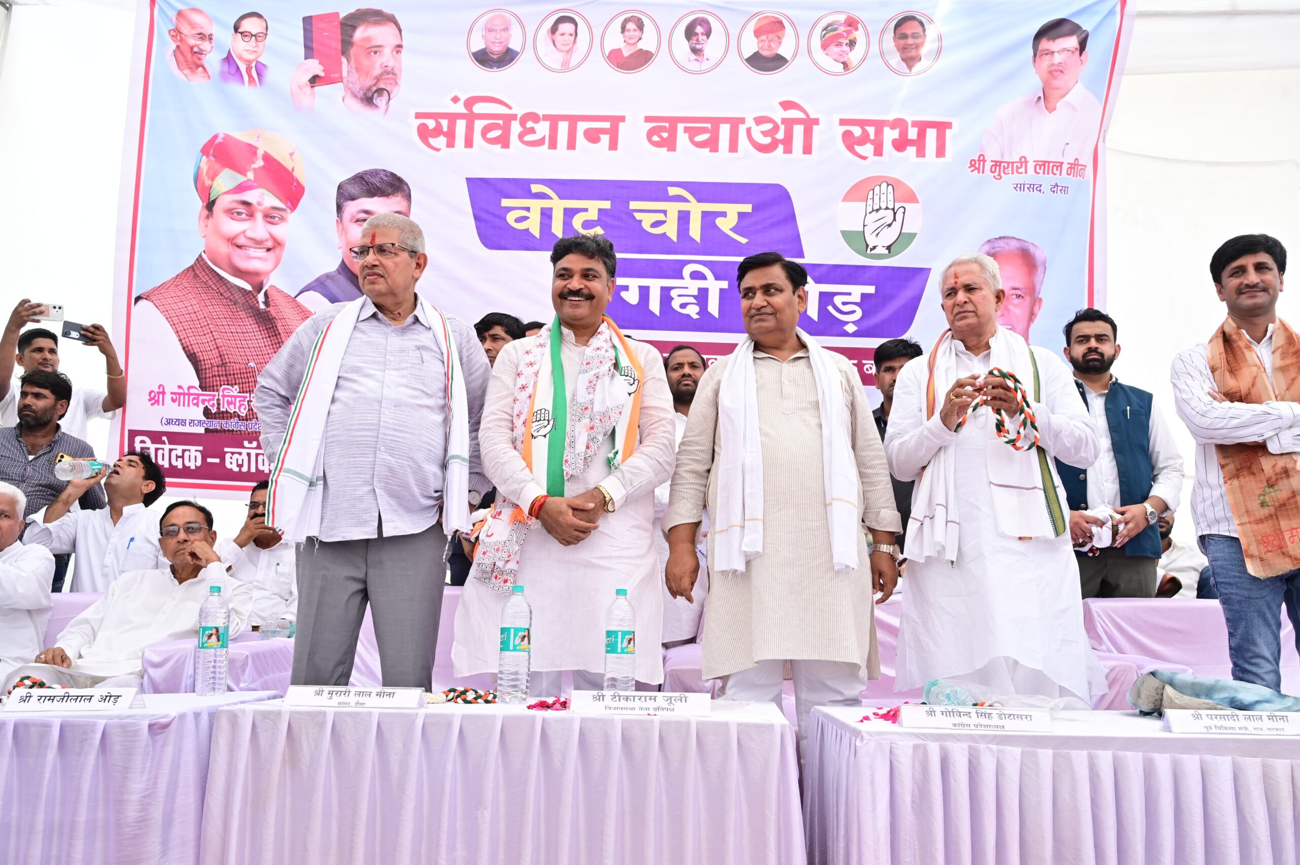 वोट चोर, गद्दी छोड़ हस्ताक्षर अभियान की शुरुआत प्रदेश कांग्रेस अध्यक्ष गोविंद सिंह डोटासरा ने दौसा के लालसोट में जनसभा को सम्बोधित किया September 16, 2025 Read More »